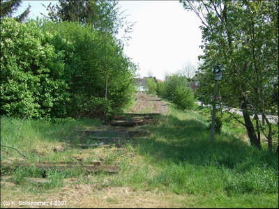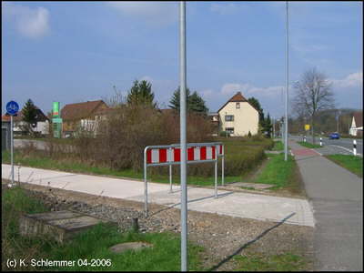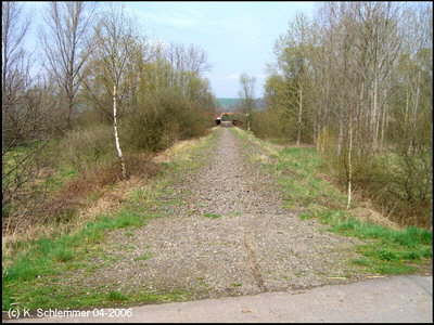 Betonierter Radweg Richtung Bahnhof, Reste der Gleisanlagen und andere Bahnrelikte!