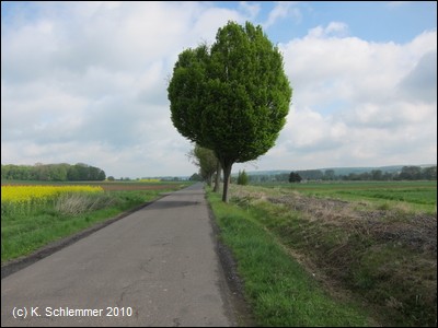 Dort trifft man auf die alte Bahnstrecke. Die Gleise sind abgebaut (Blick Richtung Duderstadt. Wir folgen der Beschilderung nach Mingerode auf einer Nebenstraße.