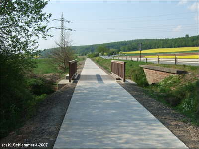 Im Sommer 2008 wurde der letzte Abschnitt über die "Bimmelbrücke" als Radweg ausgebaut.