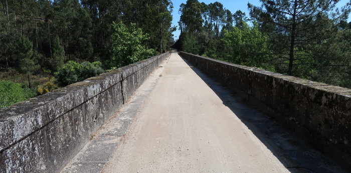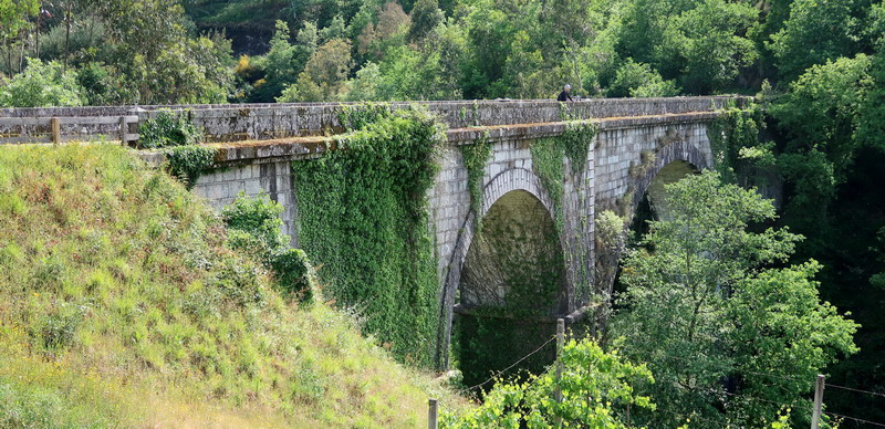 Der Radweg überquert nun das Viadukt Ponte de Matamá, eine der größten Granitsteinbrücken in Europa: 190 m lang, 52 m hoch. Nur ein kleiner (namenloser?) Bach fließt durch den riesigen Hauptbogen.