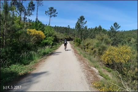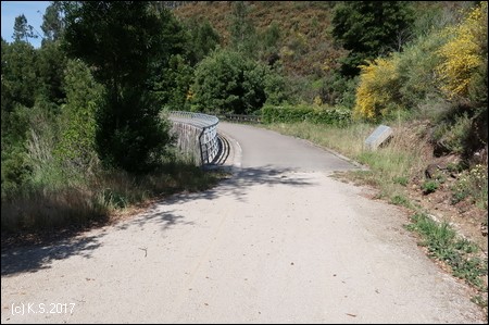 Die Strecke hat schon ordentlich an Höhe gewonnen, tief in der Schlucht fließt der Rio Tâmega. Etwa 1 km nach dem Bahnhof Chapa endet der Asphalt.