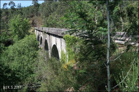 Genau bei Bahnkilometer 20,317 ! Das Viadukt "Santa Natália". 87,4 m lang, 3 Bögen aus Granit.