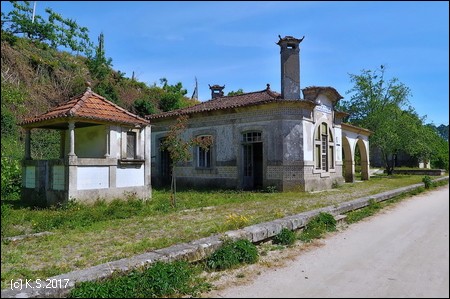 Der Bahnhof Gatão, 700 m nach dem Ostportal des Tunnels, ist ein originelles Gebäude, restauriert und schön bemalt - aber leider nicht bewirtschaftet. Auch der renovierte Gepäckschuppen ist geschlossen, aber es gibt dort ein paar Parkplätze für Autos.