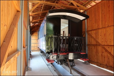 In der "Bahnwerkstadt", einem Holzhaus, wurde ein alter Waggon ausgestellt, der mit viel Engagement restauriert wurde.