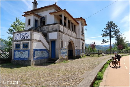 Der Bahnhof von Mondim de Basto bei Bahnkilometer 40,158 (Radweg: 27,2 km von Amarante) ist ein imposantes Bauwerk, verziert durch wunderschöne alte Kacheln.