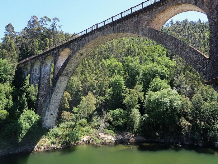 Nur 1,3 km nach Nespeirera überspannt ein großes Viadukt in einem sanften Bogen das Tal. Das Viadukt Ponte dos Melos ist eines der großen Bauwerke der Linha do Vouga.