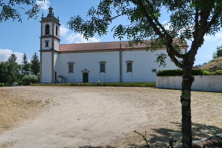 Die Bahntrasse durchquert ein Waldgebiet, nächste Station ist Bodiosa. Der reichlich mit Sperren verbarrikardierte Radweg erreicht schließlich die Kirche São Miguel Arcanjo.