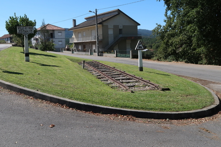 Das Bahnhofsgebäude wurde hübsch restauriert, das Fragment einer Eisenbrücke erinnert an die Eröffnung des letzten Teilstücks der Ecopista zwischen Paradela und Fontelas (2013).