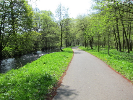 Nach 250 m überquert man die Felda, dann wieder links abbiegen und am Fluss entlang.