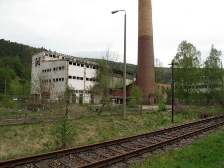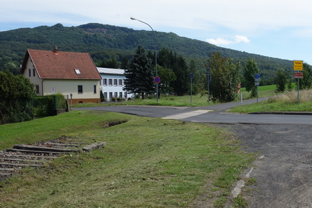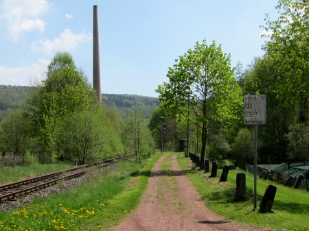 Ein kurzes Stück geht es auf der Straße durch den Ort bis zum Haltepunkt Dietlas und der alten Bergwerksmaschinenfabrik.