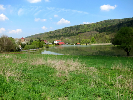 An den Dietlaser Seen vorbei in den Ort. Schloss Feldeck ist in Privatbesitz.