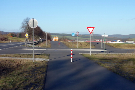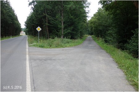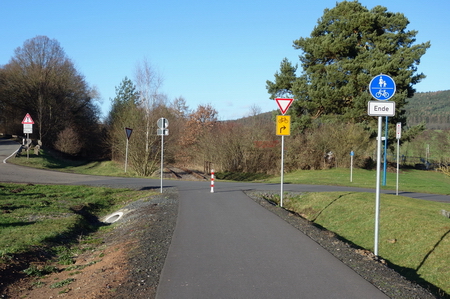An der neu gestalteten Kreuzung mit der Straße nach Glattbach trifft man auf den fertigen Streckenabschnitt nach Zella (Blick zurück).