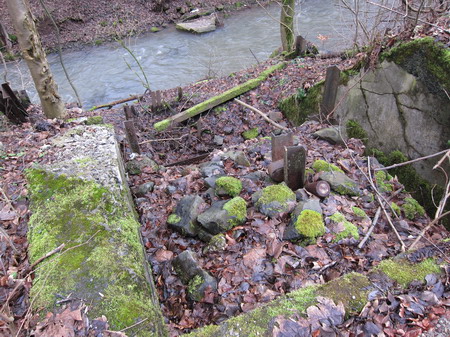 Direkt unter der Brücke (Bj. 2001) vor der Einödsmühle (Blick zurück) steht auch noch eine Pfostensperre.