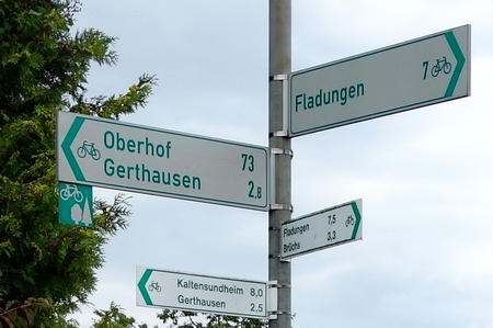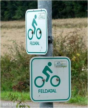 An der alten Brücke findet man auch wieder Wegweiser des Feldaradwegs.