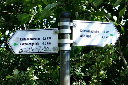 Am Wasser entlang und irgendwie zum südlichen Ortsende. Ein Wegweiser führt nach Kaltensundheim.