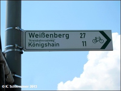 Auch Im Jahr 2013 konnten wir noch keinerlei Anzeichen für einen Weiterbau auf der Trasse feststellen. Der Radler, der die Ost-West-Verbindung zwischen Neiße und Spree sucht, muss sich eine individuelle Route über die Berge zum Beispiel nach Bautzen suchen. Einige Abschnitte nutzen den Radweg Sächsische Städtekette. Die Rückfahrt von Bautzen nach Görlitz ist mit der Bahn möglich. (Görlitz - Bautzen mit Anfahrt über den Kreisbahnradweg: ca. 58 km).