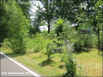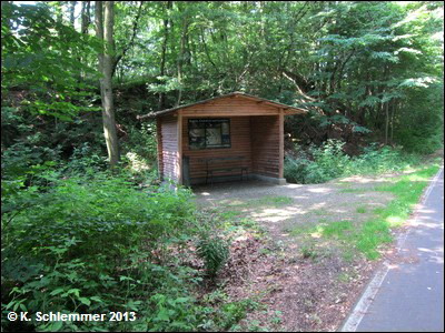 So langsam geht es etwas bergauf. Haltepunkt Nieder-Königshain, Kilometer 9,5. Das Schild ist gut versteckt!