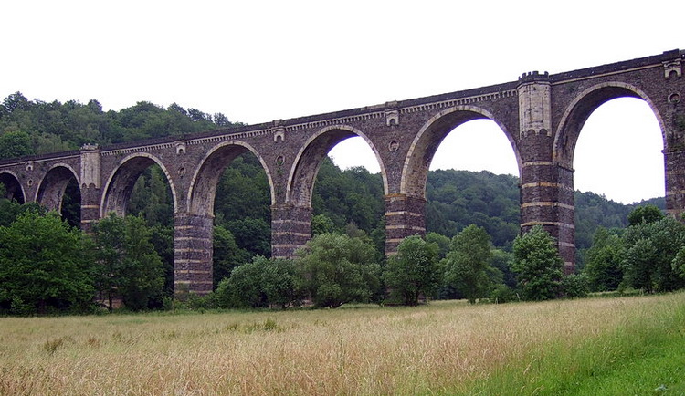 Das riesige Viadukt beschreibt eine Kurve von 328 m Länge in 43 m Höhe über das Flöhatal, die Aussicht ist grandios.