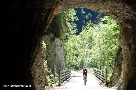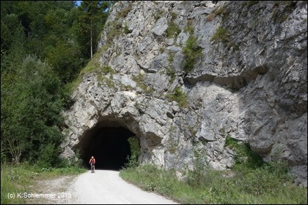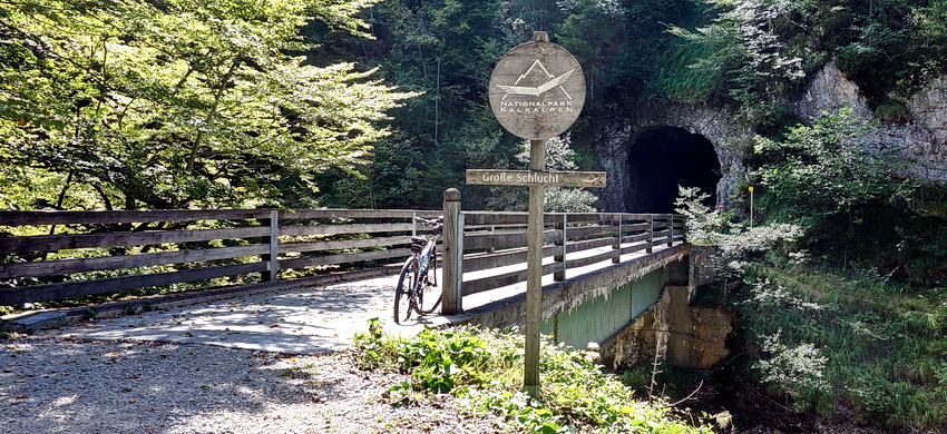 In den österreichischen Kalkalpen befindet sich einer der spektakulärsten Bahntrassenradwege der Alpenregion. Die ehemals zur Erschließung des Hintergebirges für den Holzabtransport gebaute Schmalspurbahn (760 mm) dient als Basis für diesen Radweg durch den Nationalpark Kalkalpen und führt in zwei Abschnitten auf Forstwegen in einem Rundkurs durch die Berge dieser Region. Der Bau von neunzehn Tunneln ( lt. Angaben im Internet zusammen 1,922 km lang) und 41 Brücken war zum Betrieb der Strecke notwendig. Zwölf dieser Tunnel sind auf dem Radweg noch befahrbar, der längste davon 339m lang. So verspricht die Strecke ein wahres Erlebnis abseits des motorisierten Verkehrs.