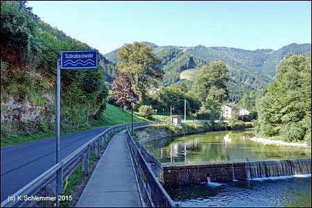 Hier beginnt der Rundkurs. Wir fahren zunächst rechts ab am Großen Bach entlang zur "Großen Klause" - geradeaus führt die Trasse nach Brunnbach.