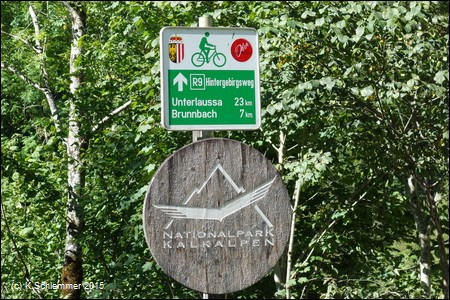 Am Abzweig nach Anzenbach trifft man auf die Schilder des "Nationalparks Kalkalpen".