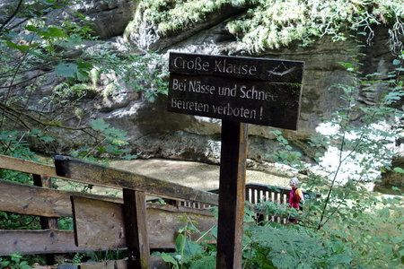 Wir erreichen die "Große Klause", einst Arbeitsplatz der Flößer. Bei Nässe ist der Abstieg rutschig!