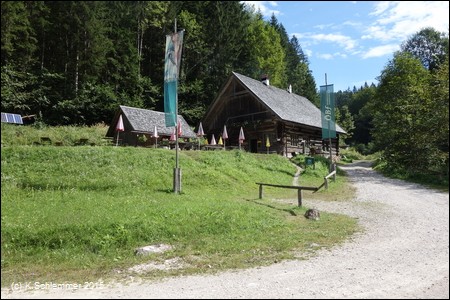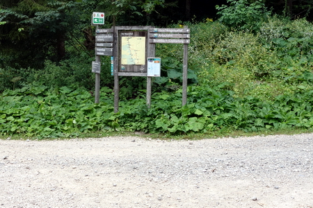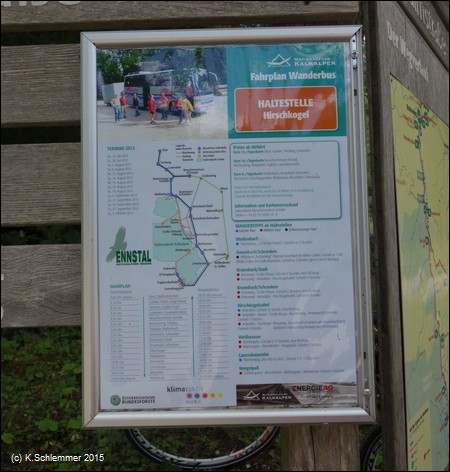 Am Abzweig zur Anlaufalm stehen Informationstafeln. Auch der Wanderbus hält hier.