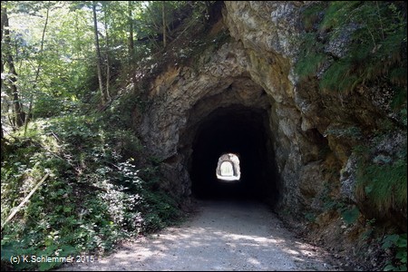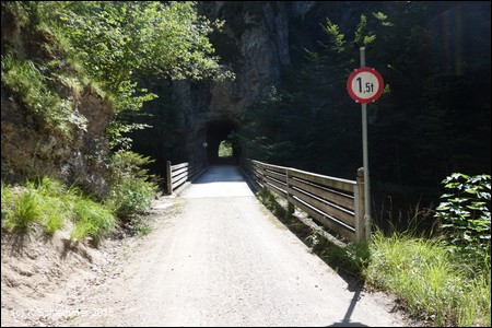 Der erste Tunnel ist nur kurz. Dann geht es vorbei an einer Brücke auf die andere Seite des Reichramingbaches zu den Wanderwegen (Ebenforstalm)