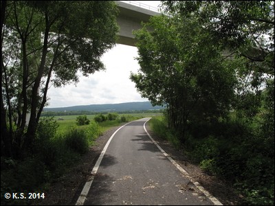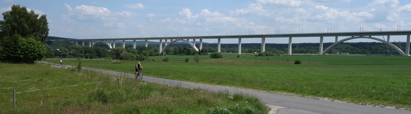 Die Trasse führt unter der gigantischen Ilmtalbrücke der neuen ICE-Strecke hindurch.