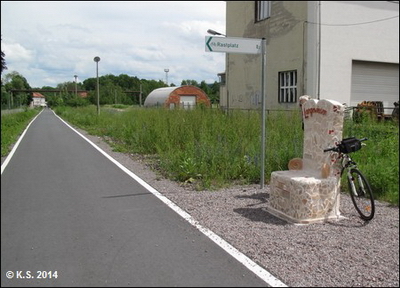 Am Rande des Radwegs in Langewiesen findender Radler auch eine Sitzgelegenheit abseits des Fahrradsattels.