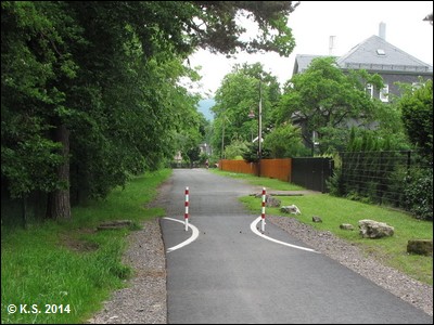 Wieder auf der breiten Fahrradstraße, hier mit Auffahrsperren beidseits. Nun geht es hinauf Richtung Möhrenbach.