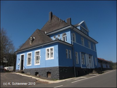 Nun verlassen wir erneut die Bahntrasse. Die Wegweiser bringen uns nach Kerpen/Eifel. Der alte Bahnhof liegt etwas abseits des Radwegs und ist heute Wohnhaus.
