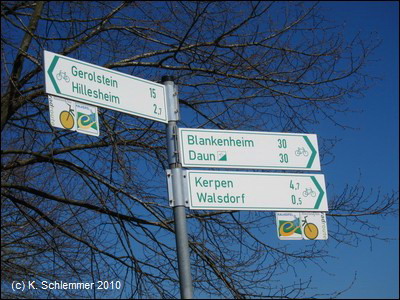 Wir trauen dem Straßenschild in Kerpen nicht und folgen lieber den Wegweisern!