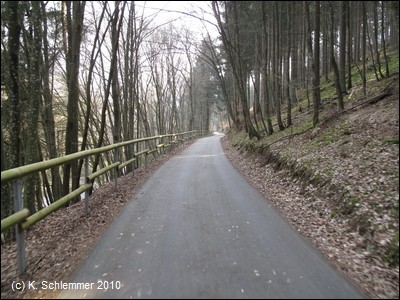 Auf gut ausgebauter Strecke geht es Richtung Ahütte. Einige alte Brücken werden umgangen, es resultieren einige "Buckel" im Höhenprofil (hier am Abzweig zur Nohner Mühle).