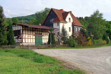 Nur wenige Meter weiter befindet sich der Bahnhof Dingelstädt, der restauriert als Gaststätte oder vielleicht auch als Herberge (?) dienen soll (2019).