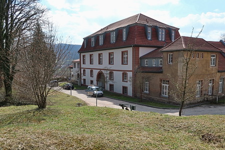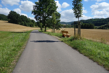 Am Schloss Bischofstein, heute Pflegezentrum, darf dann auch der Radweg auf die Bahntrasse.