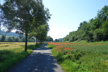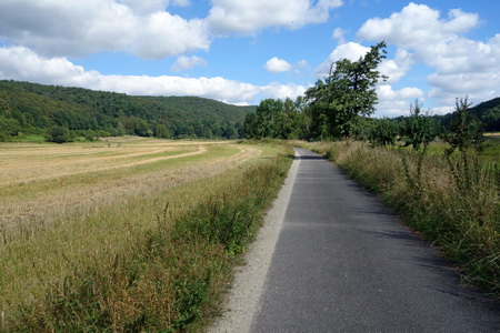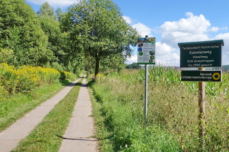 Aufg dem einstigen Kolonnenweg der DDR Grenztruppen (bis 1990) geht es nach Thüringen, ein asphaltierter Weg führt nach Großtöpfer.