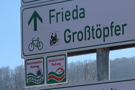Wir befahren den Kanonenbahnradweg vom Werratal aus, von dort ist die Anreise mit der Regionalbahn über Eschwege möglich. (Auch die Verbindung auf thüringer Seite ist von Leinefelde-Worbis aus möglich.) Die Zufahrt auf dem Werratalradweg nach Frieda beträgt rund 6 km.