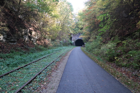 Versteckt im Wald am Hang des Großen Dachsberges liegt das Ostportal des Friedatunnels, halb verdeckt von der üppigen Vegetation und umgestürzten Bäumen. Der Friedatunnel,1066 m lang, wurde ab Oktober 1989 wegen Baufälligkeit verfüllt und versperrt. Nur einige hundert Meter weiter talaufwärts erkennt man hoch über dem Radweg ein Brückenlager des gesprengten Friedaviadukts.