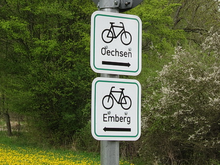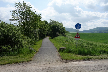 Der Bahntrassenabschnitt endet hier in Oechsen. Der Radweg aber führt weiter am Ortsrand entlang und hinauf Richtung Lenders und zur Emberghütte.