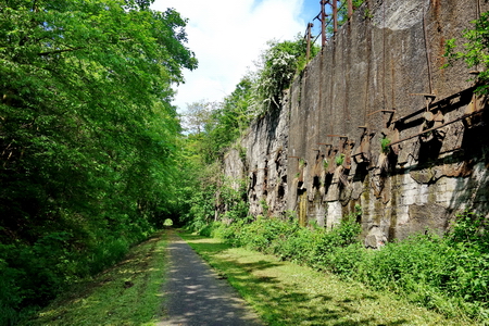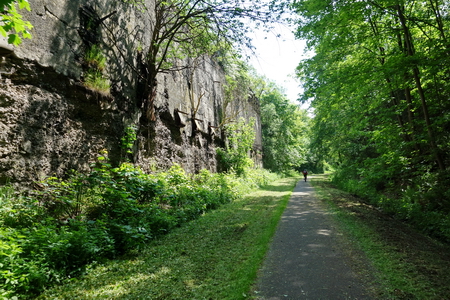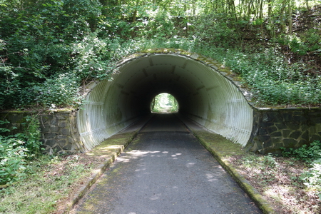 Die ehemalige Brücke über die Bahnstrecke bei Masbach wurde schon vor Jahren abgerissen und durch eine "Röhre" ersetzt. So erreicht man die Verladestation des alten Schotterwerks.
