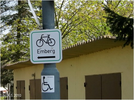 Vor dem Gelände des ehemaligen Güterbahnhofs endet der Ausbau auf der Trasse. Ab hier ist der Radweg zum Emberg beschildert.