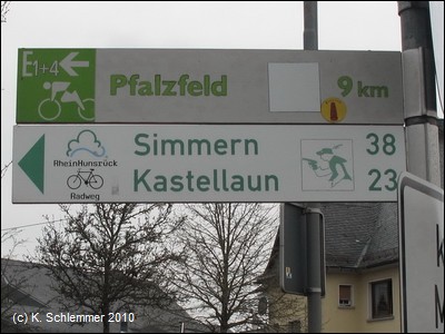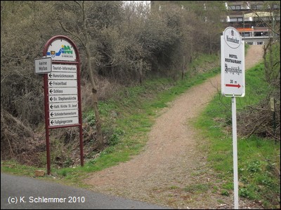 Die Beschilderung (hier in Gegenrichtung) ist gut. Wir sind am Ziel, ein kurzes Stück auf der Nebenstraße und die Innenstadt von Simmern ist erreicht.