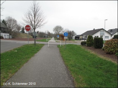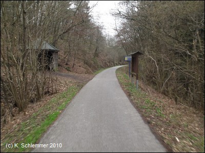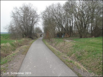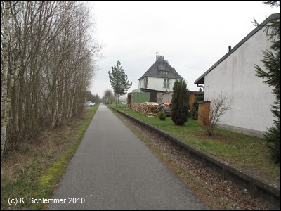 Am Ortsrand von Simmern verlässt der Radweg die Trasse. Das leere Gleisbett ist noch deutlich zu erkennen.