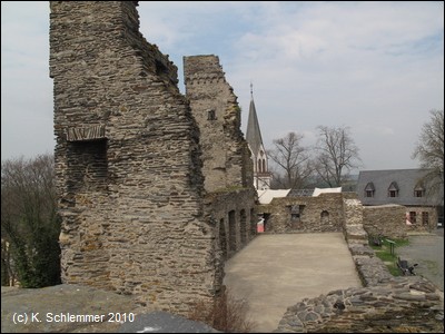 Auf einem Felsen mitten in der Stadt steht die Ruine der "Sponheimer Burg". Wer sich hinauf wagt, kann sich hier erholen.