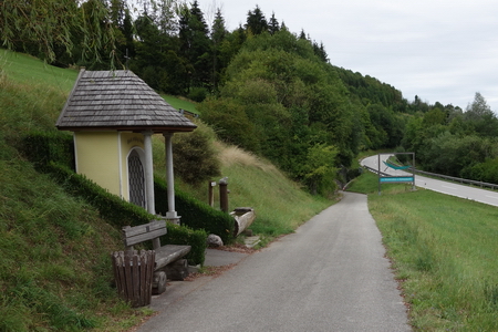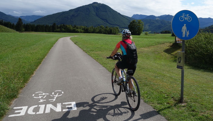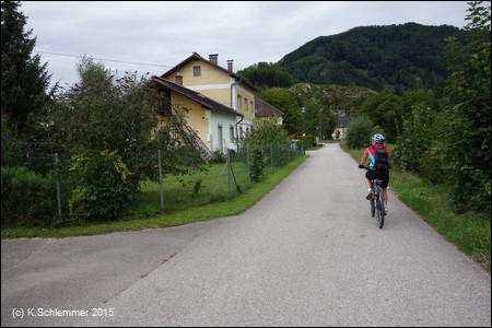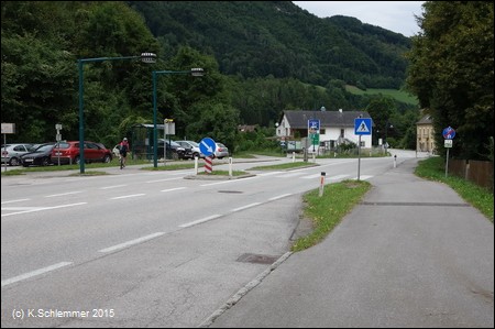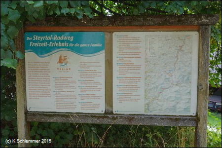 Wir haben diesen Startpunkt gewählt, weil der Steyrradweg bisher am Stausee ca. 500 m weiter südlich endet. Die Weiterfahrt von dort ist nur auf der Straße möglich, der Ausbau des Radwegs ist in Arbeit (bis 2018). Auch der Weg am Stausee entlang führt nicht weiter.