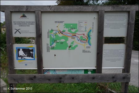 Eine Infotafel berichtet über das Reich der Schwarzen Grafen, wie die Hammerherren dort genannt wurden (Erlebnisweg Eisenstraße). Ab hier begleitet der Radweg wieder die Bundesstraße.