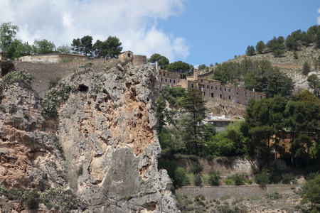 Steile Felswände begrenzen das Tal, die Ruinen alter Fabrikgebäude liegen hoch oben am Hang. Das Viadukt über den Fluss Barxell ist 133 m lang und 28 m hoch.