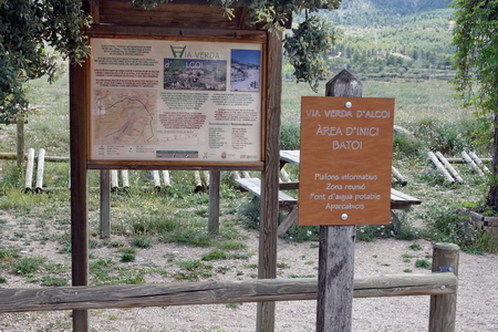 Etwa 3 km vom Bahnhof entfernt, im Stadtteil Batoi, trifft man auf einen kleinen Rastplatz, hier ist der Beginn der Vía Verde. Infotafeln und Wegweiser, Toiletten und ein großer Parkplatz sind ebenfalls vorhanden (2016).