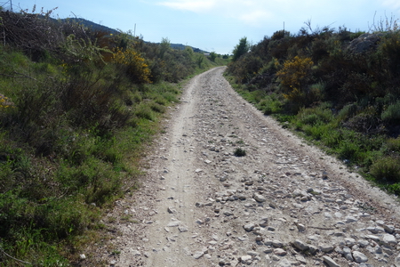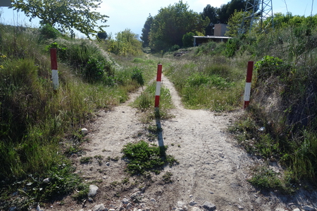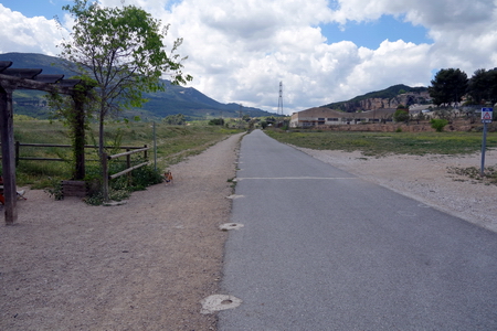 Die Weiterfahrt nach Ibi und der Vía Verde del Maigmó ist auf Nebenstraßen beschildert. Teilstrecken ließen 2006 sich auch noch auf der Bahntrasse fahren. Die Wegweisung war bei unserer Befahrung nicht immer gut zu finden. Kleine blaue Fahrradschilder markieren den Weg zu Weiterfahrt auf der Servicestraße der A7. Ein zugewachsener und vernachlässigter Rastplatz nahe der Passhöhe “El Collado de Malany" liegt am Wegesrand. Die ebenfalls zugewachsene Bahntrasse verläuft links der Straße in den Feldern.